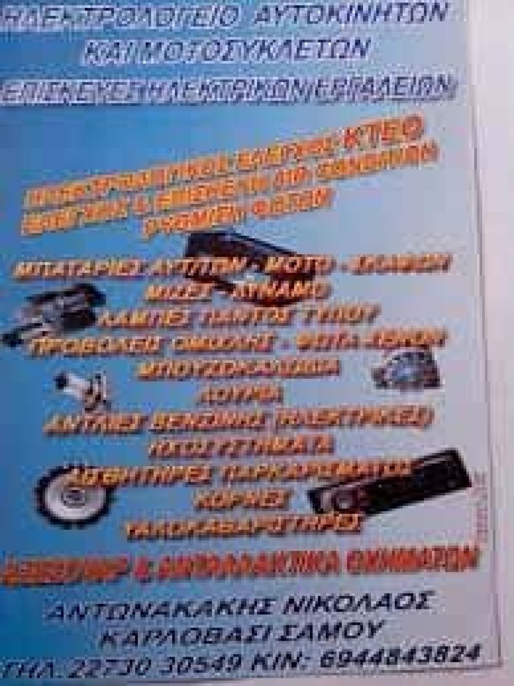 ΗΛΕΚΤΡΟΛΟΓΕΙΟ ΑΥΤΟΚΙΝΗΤΩΝ ΝΕΟ ΚΑΡΛΟΒΑΣΙ ΣΑΜΟΣ,ΜΠΑΤΑΡΙΕΣ ΝΕΟ ΚΑΡΛΟΒΑΣΙ ΣΑΜΟΣ,ΜΙΖΕΣ ΝΕΟ ΚΑΡΛΟΒΑΣΙ ΣΑΜΟΣ,ΗΛΕΚΤΡΙΚΑ ΝΕΟ ΚΑΡΛΟΒΑΣΙ ΣΑΜΟΣ ΔΩΔΕΚΑΝΗΣΑ